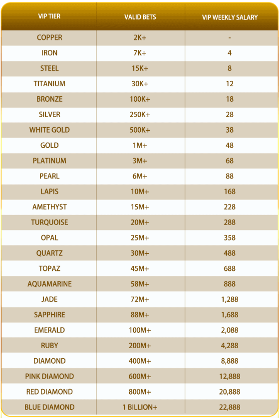 1 VIP Weekly Salary-Automatically sent before 22:00 [GMT+8] every saturday. Go to [Rewards Center]to claim your bonus.